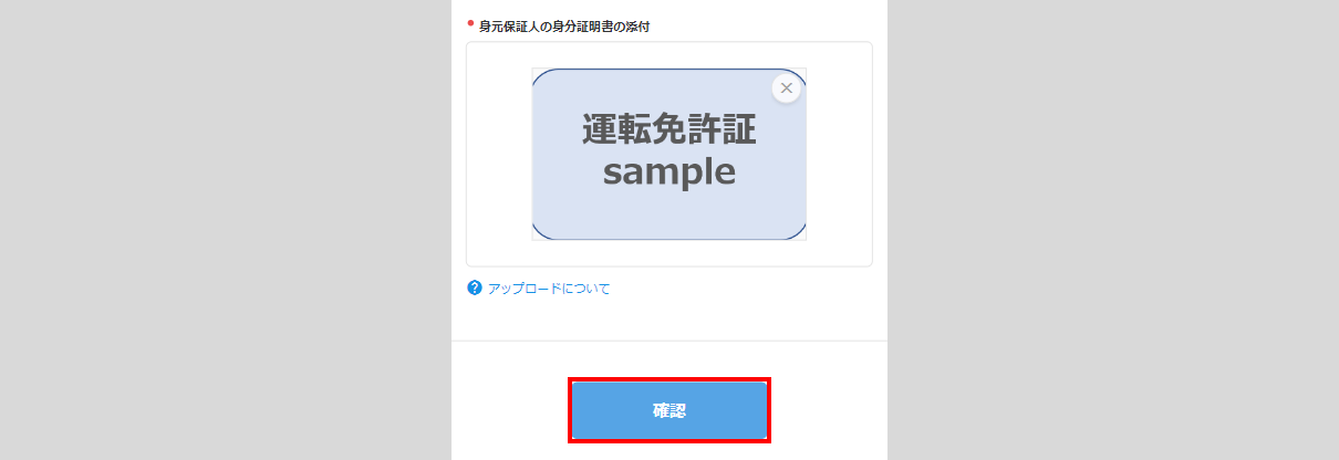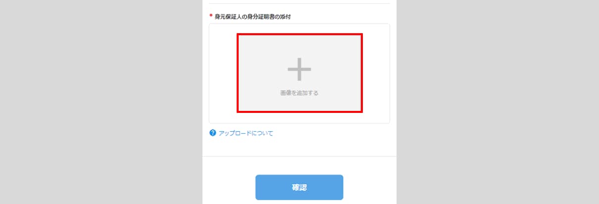 - 「身元保証人の身分証明書の添付」欄が表示されている場合は、[画像を追加する]をクリックし、身分証明書の画像をアップロードします。