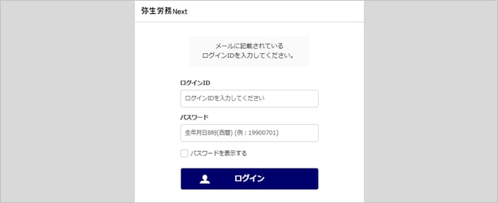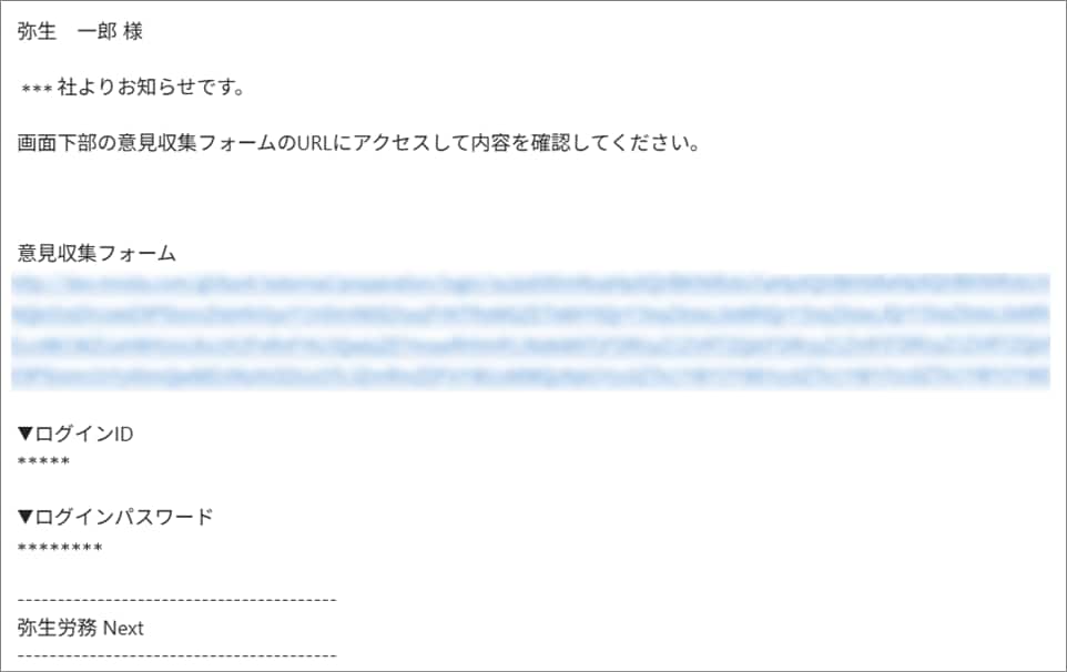 - 「[弥生労務 Next]就業規則への意見収集フォームが届いています。」のメールを確認し、意見収集フォームのURLへログインします。