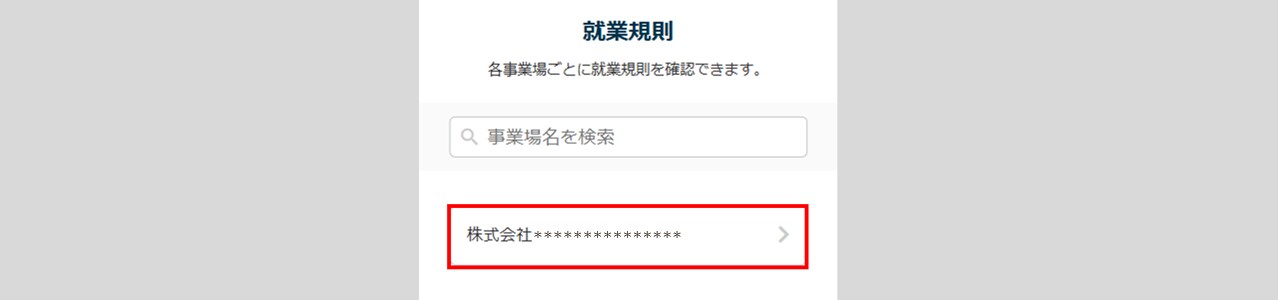 - 自身に公開されている就業規則の事業場一覧が表示されます。確認する事業場名をクリックします。