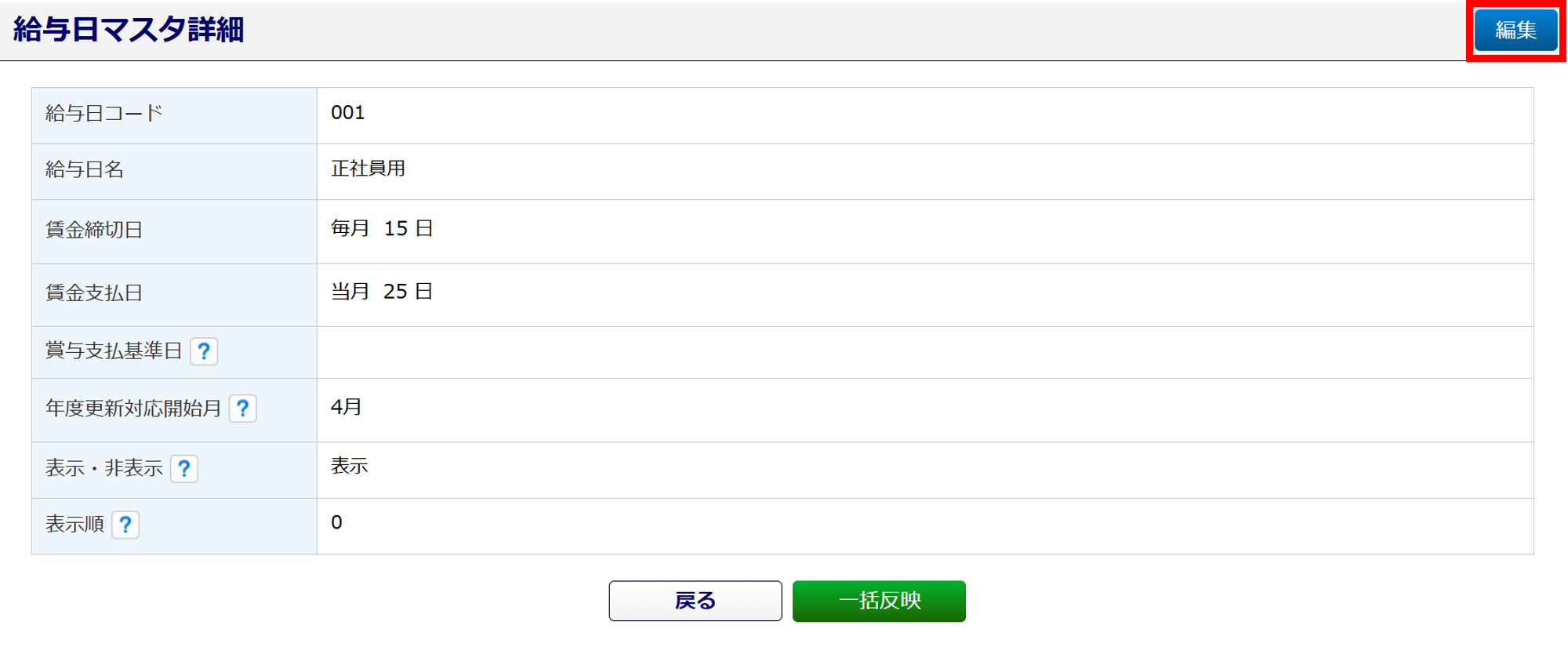 [マスタ管理]>[企業設定]にて、「給与日マスタ」での設定が必要となります。