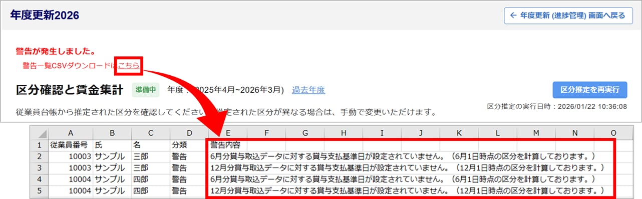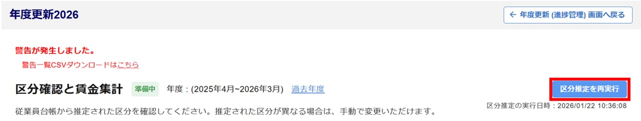 - [区分推定を再実行]をクリックすると、警告が解消されます。