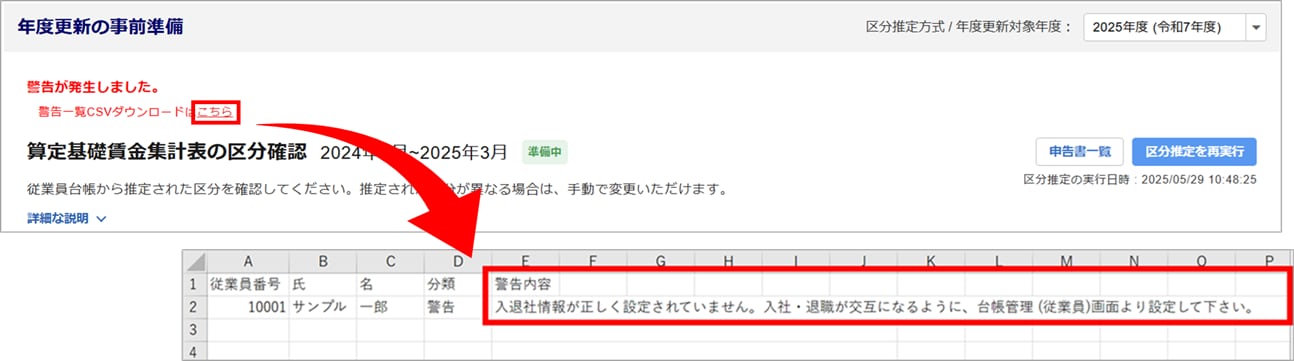 - [区分推定を再実行]をクリックすると、警告が解消されます。