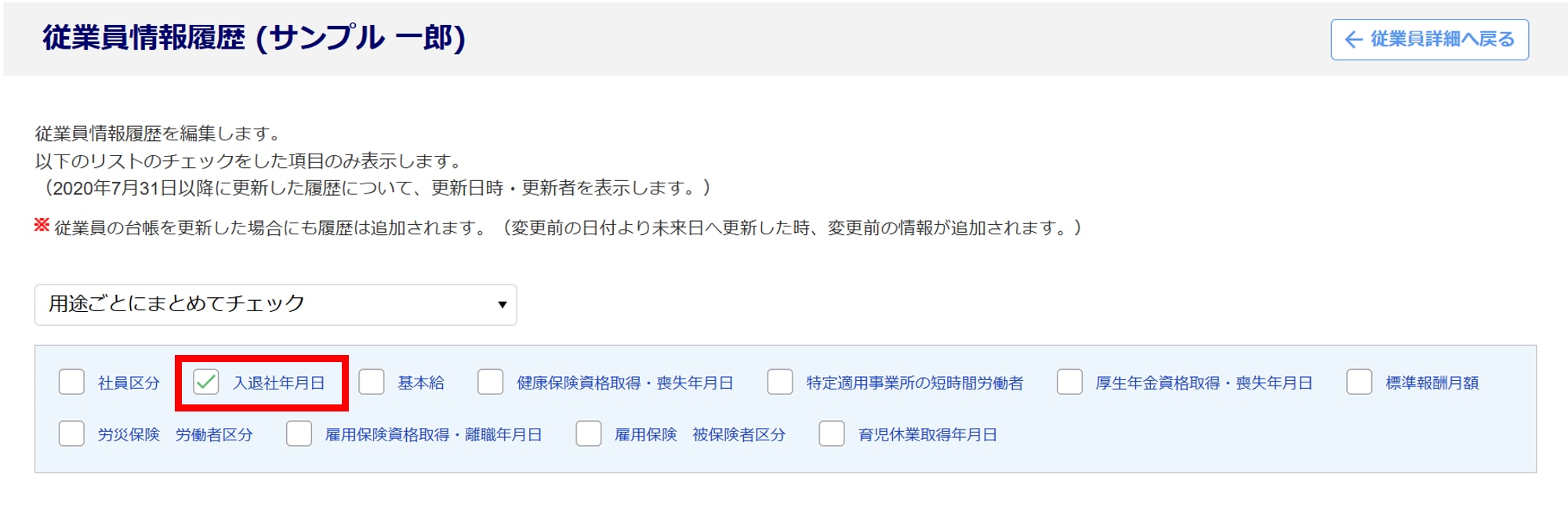 - 「入退社年月日」にチェックします。