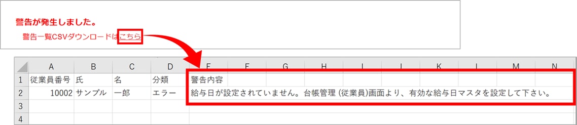 ただし、本警告が発生している従業員については、区分情報および、賃金集計には含まれません。
