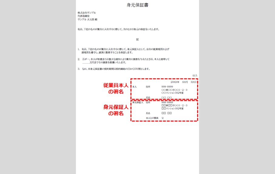 「合意確認」に「要」を設定した文書について、文書内の右下へ署名が入力されます。