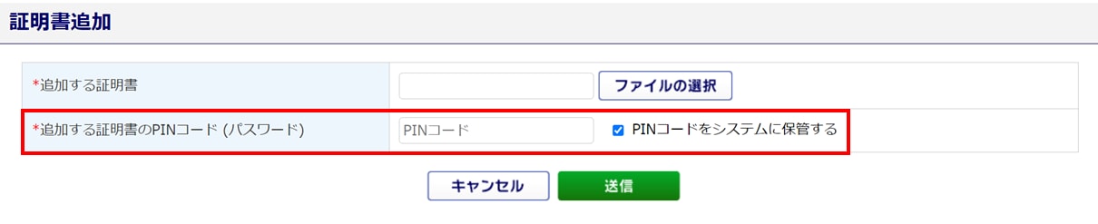 ※電子証明書の登録時に「PINコード」をシステムに保管している場合は入力不要です。