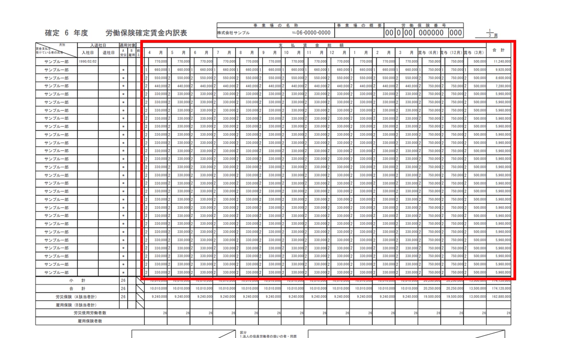 - 「労働保険料確定賃金内訳表」PDF出力方法