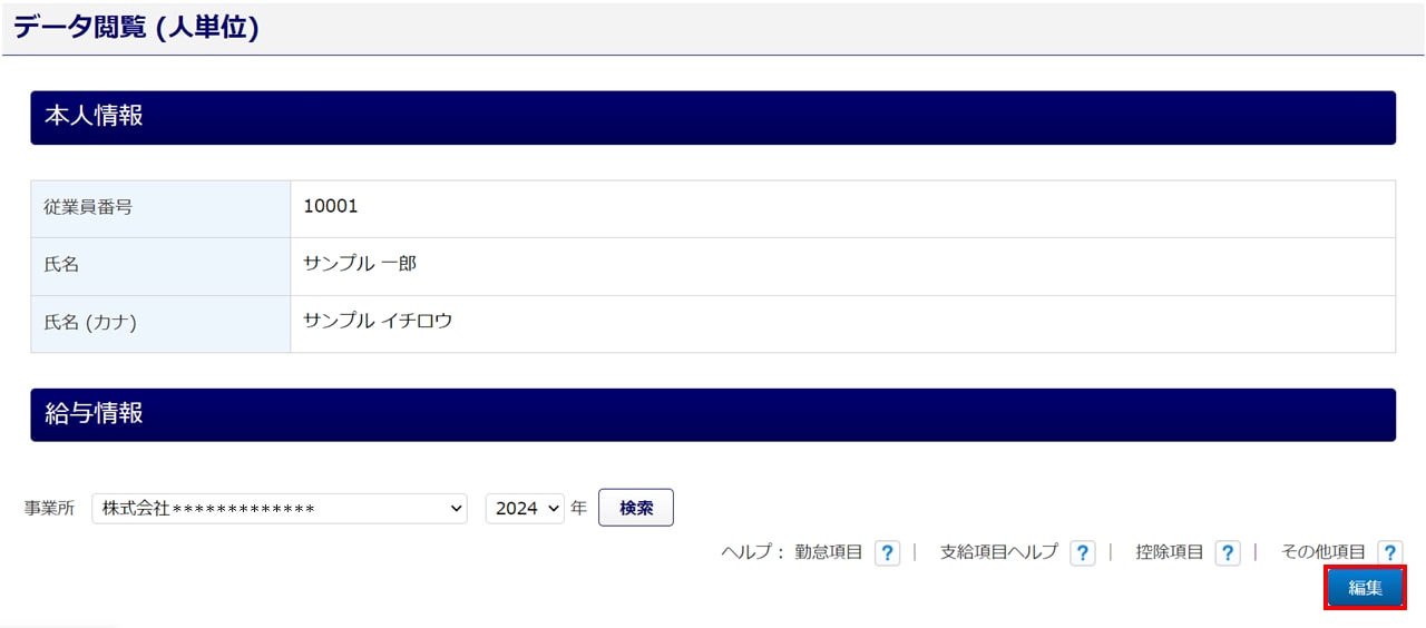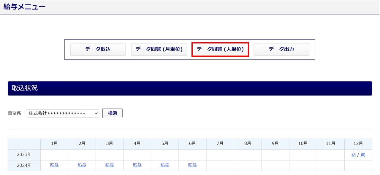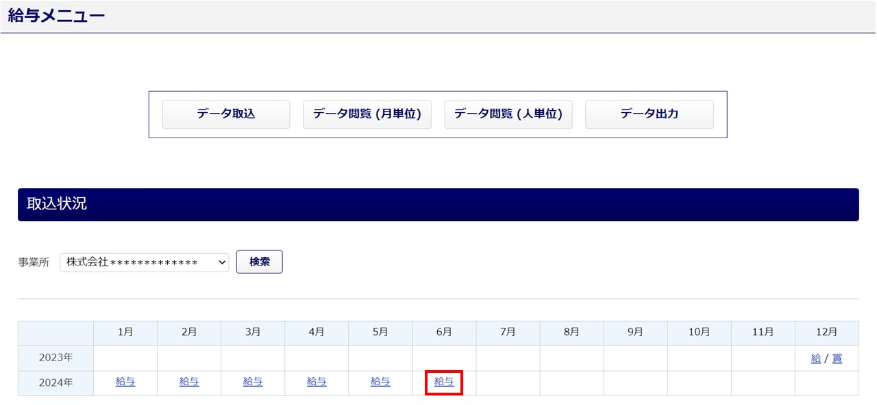 - 削除対象の年月の「給与(給)」または「賞与(賞)」をクリックします。