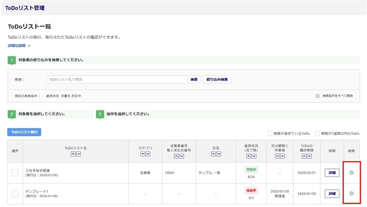 発行された「ToDoリスト」を削除する方法について、ご説明します。