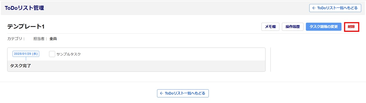 「利用者管理」設定方法 - 発行済みのToDoリスト内のタスクは削除できません。