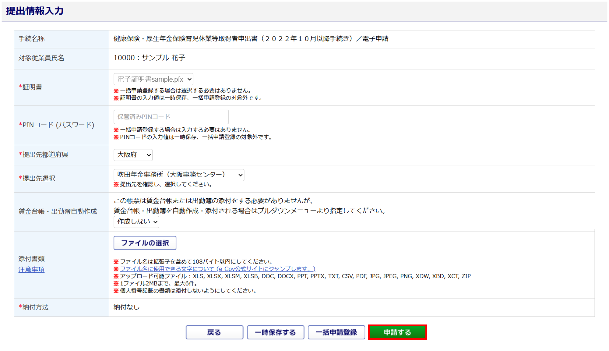【電子申請】提出情報入力