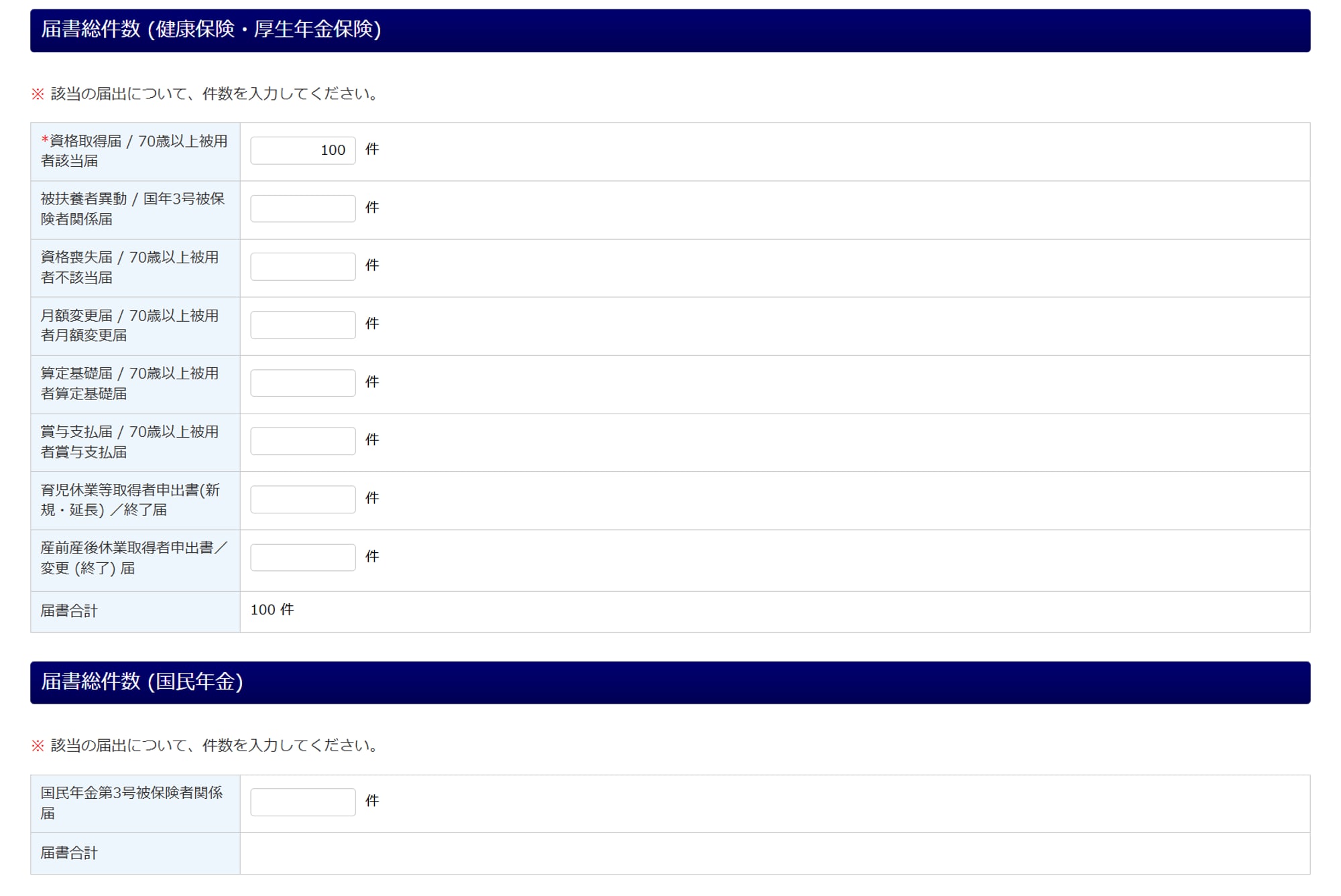 ※「事業所番号(健康保険組合)」項目は、電子申請(マイナポータル)欄から進んだ場合のみ表示されます。