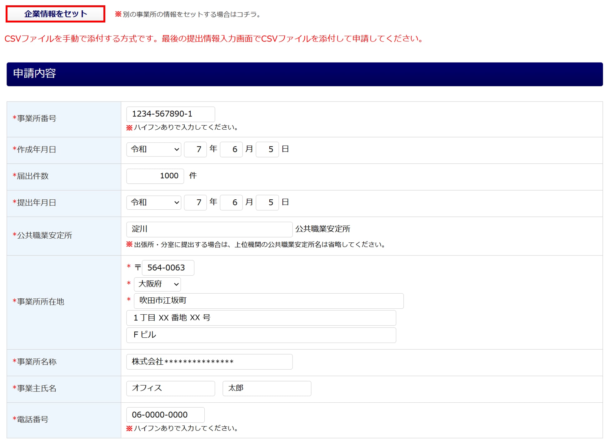 ※申請時に添付したCSVファイルは、申請後に削除されます。システム内には保管されません。