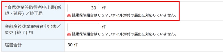 健康保険組合では、CSVファイル添付の届出に対応していません。