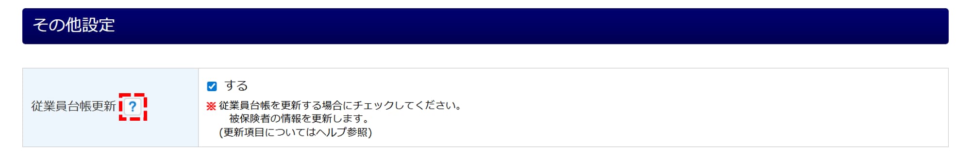 「従業員台帳更新」の「する」にチェックすると、申請時に添付したCSVの情報を従業員台帳へ更新することができます。更新対象項目については、以下の補足をご確認ください。