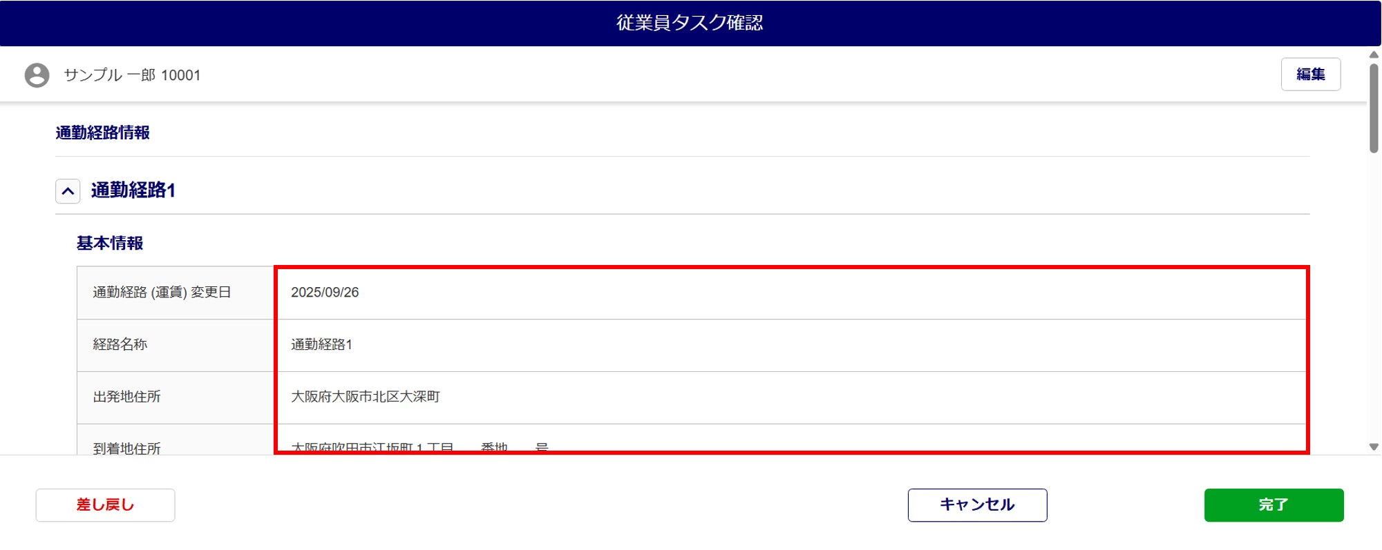- 運賃改定により通勤経路変更の申請が集中する等、従業員台帳への反映日が集中した場合、従業員台帳の反映に時間がかかる可能性があります。