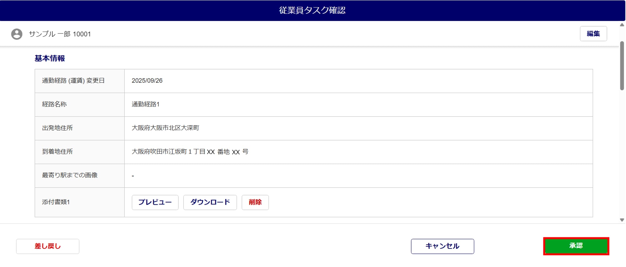 従業員から提出された通勤経路の収集タスクを承認(決裁・確認)をおこなう方法について、ご説明します。