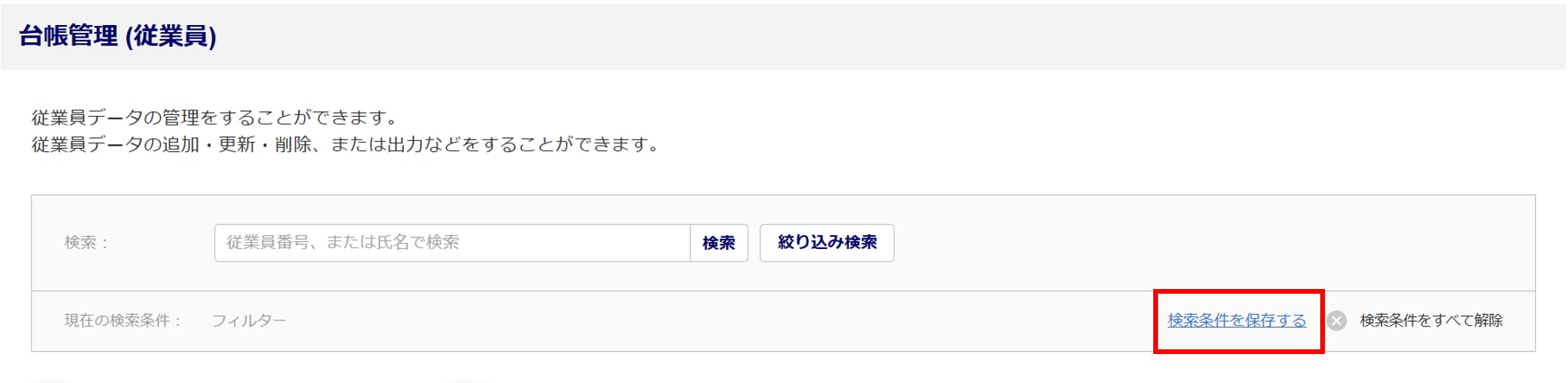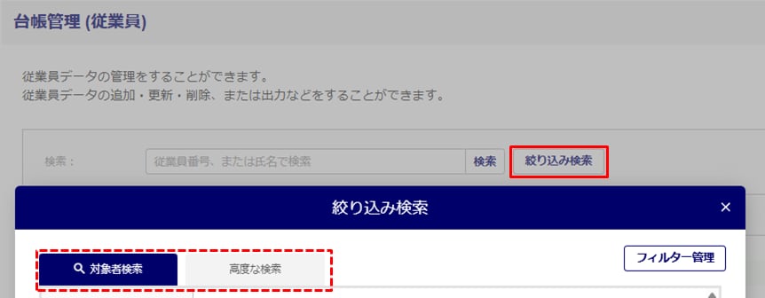 台帳管理にて従業員の情報を絞り込んで検索する方法をご説明します。