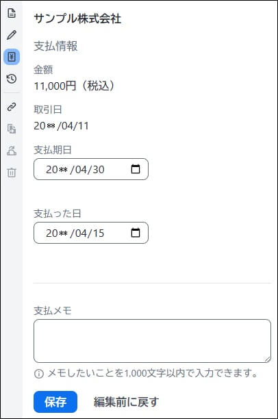 受領した請求書に、支払期日や実際に支払った日などの「支払情報」を設定できます。