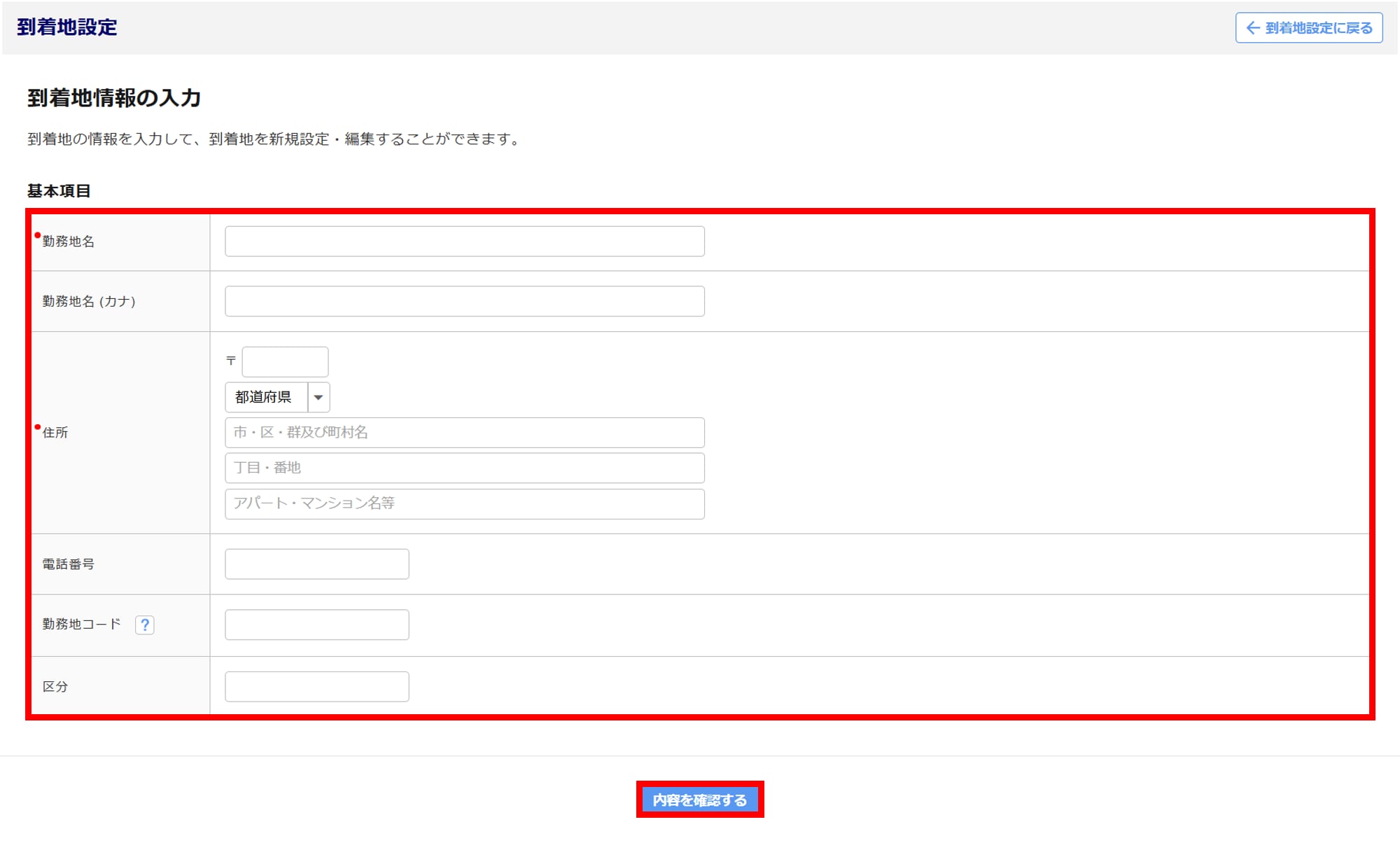 - 「到着地情報の登録が完了しました。」と表示されたら登録完了です。