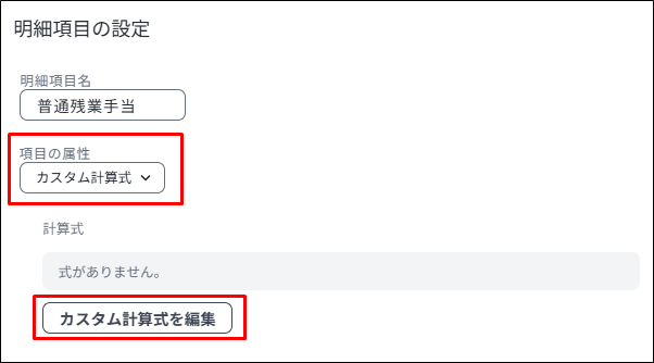 「カスタム計算式」にすると、[カスタム計算式を編集]が表示され、計算式を設定することができます。