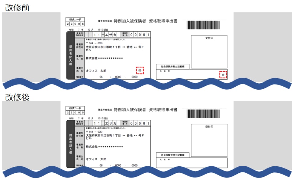 帳票:書面申請における「印」欄の削除